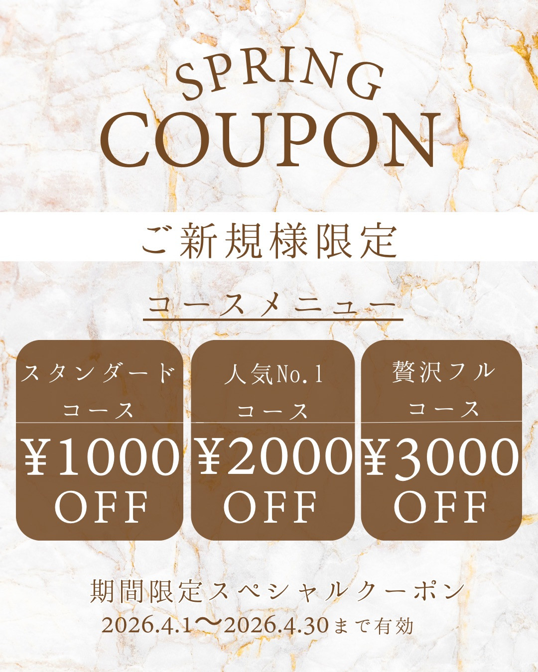 春クーポン①\ご新規様限定/コースメニューOFF